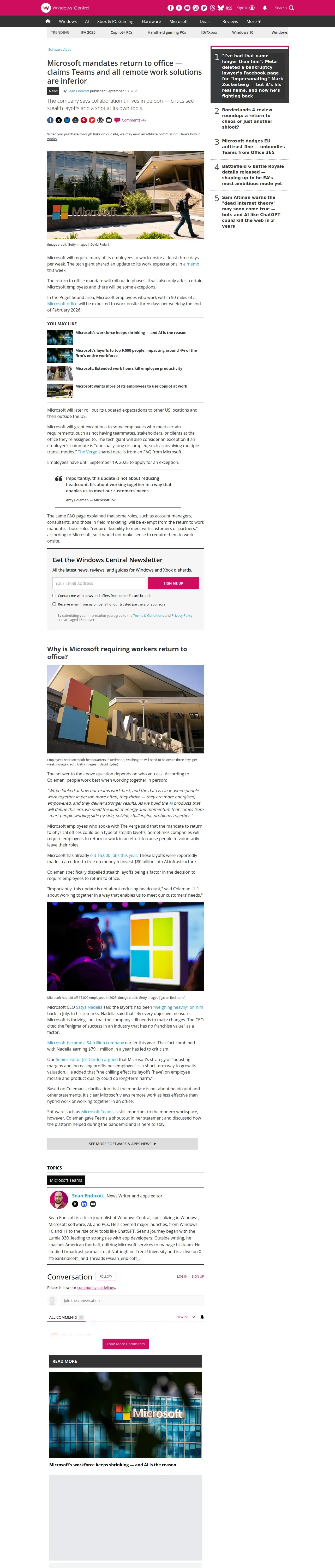 取得元URL: https://www.windowscentral.com:443/software-apps/microsoft-mandates-return-to-office-claims-teams-and-all-remote-work-solutions-are-inferior