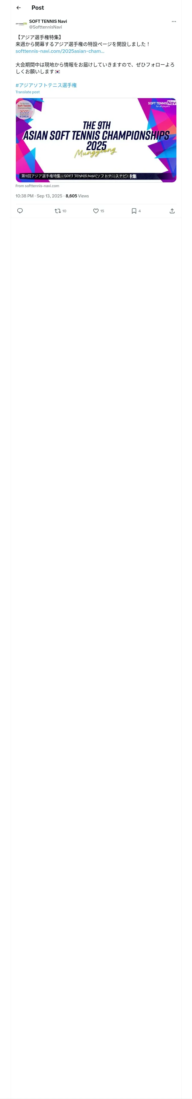 取得元URL: https://x.com:443/SofttennisNavi/status/1966858939628490960
