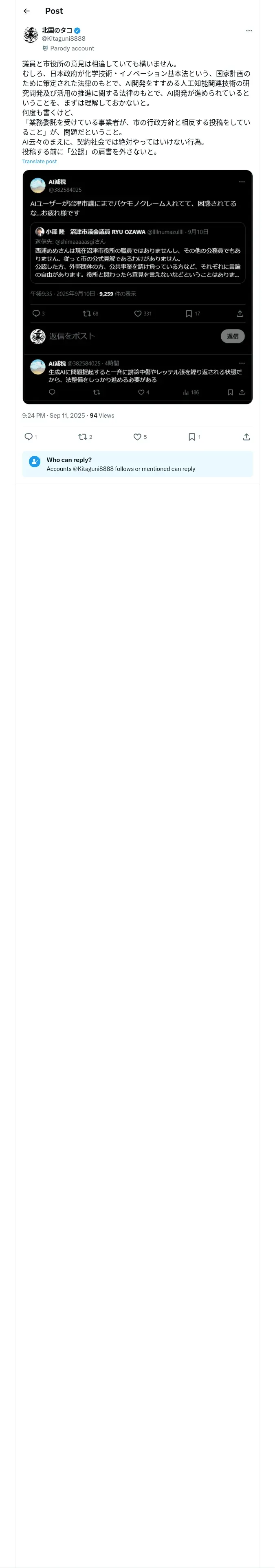 https://x.com:443/Kitaguni8888/status/1966115670095278192