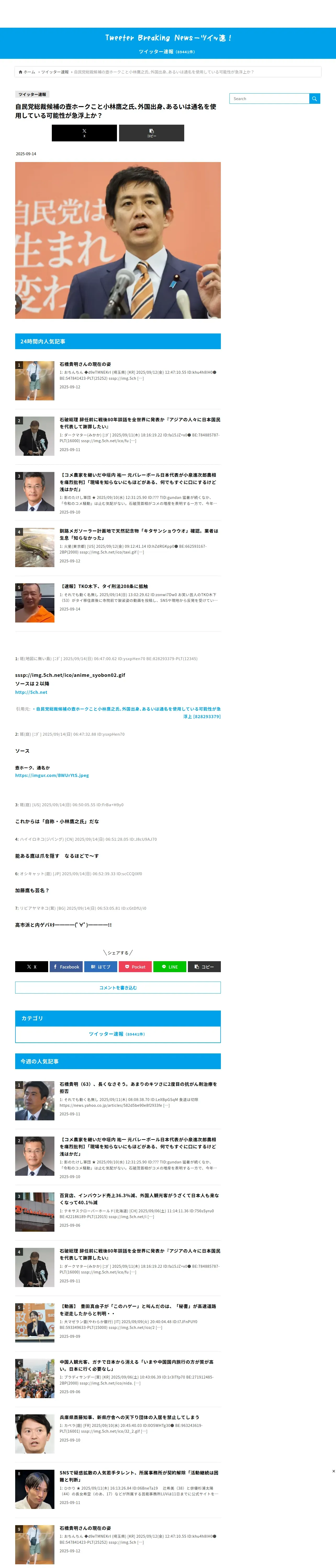 https://tweetsoku.news:443/2025/09/14/%e8%87%aa%e6%b0%91%e5%85%9a%e7%b7%8f%e8%a3%81%e5%80%99%e8%a3%9c%e3%81%ae%e5%a3%ba%e3%83%9b%e3%83%bc%e3%82%af%e3%81%93%e3%81%a8%e5%b0%8f%e6%9e%97%e9%b7%b9%e4%b9%8b%e6%b0%8f%ef%bd%a4%e5%a4%96%e5%9b%bd/