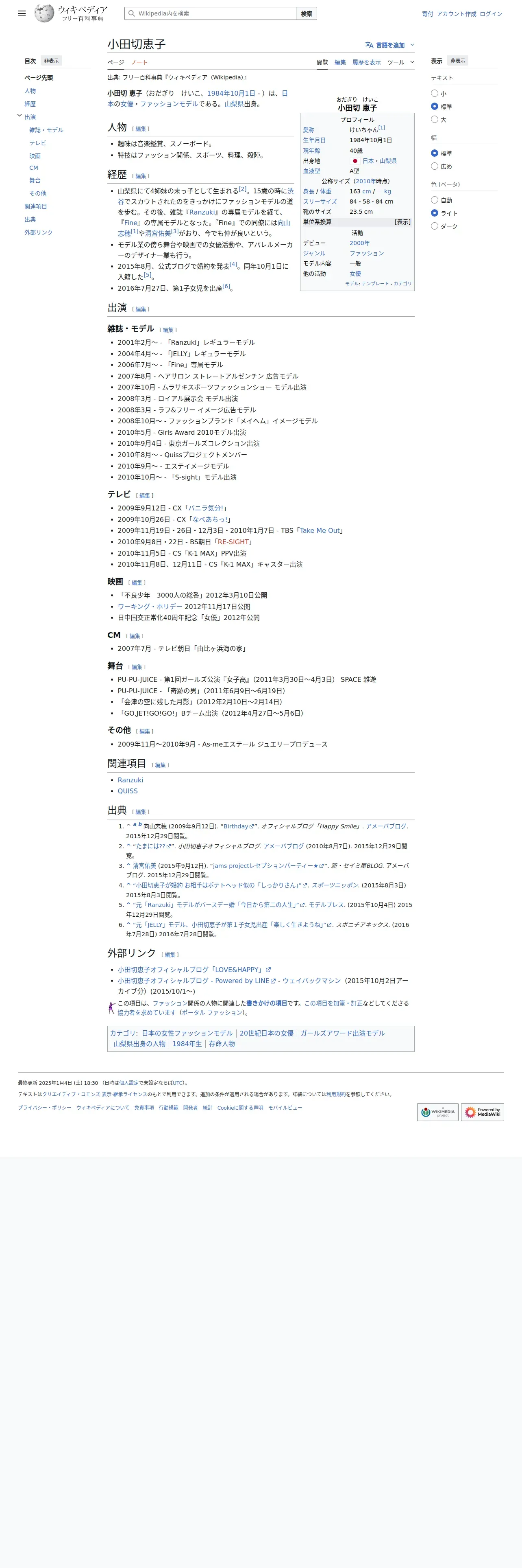https://ja.wikipedia.org:443/wiki/%E5%B0%8F%E7%94%B0%E5%88%87%E6%81%B5%E5%AD%90