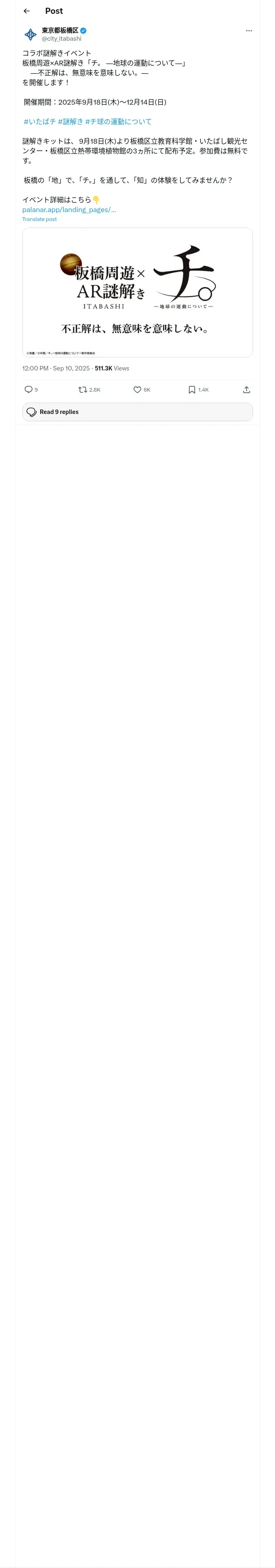 https://x.com:443/city_itabashi/status/1965611196054409492