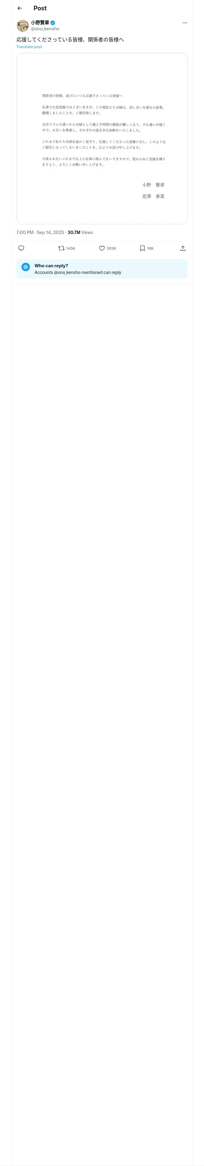 取得元URL: https://x.com:443/ono_kensho/status/1967166445454053775