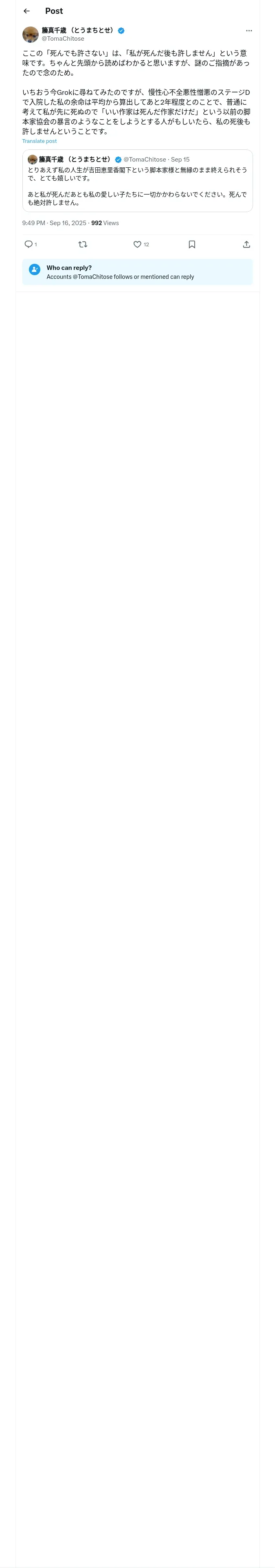 https://x.com:443/TomaChitose/status/1967933886681497776