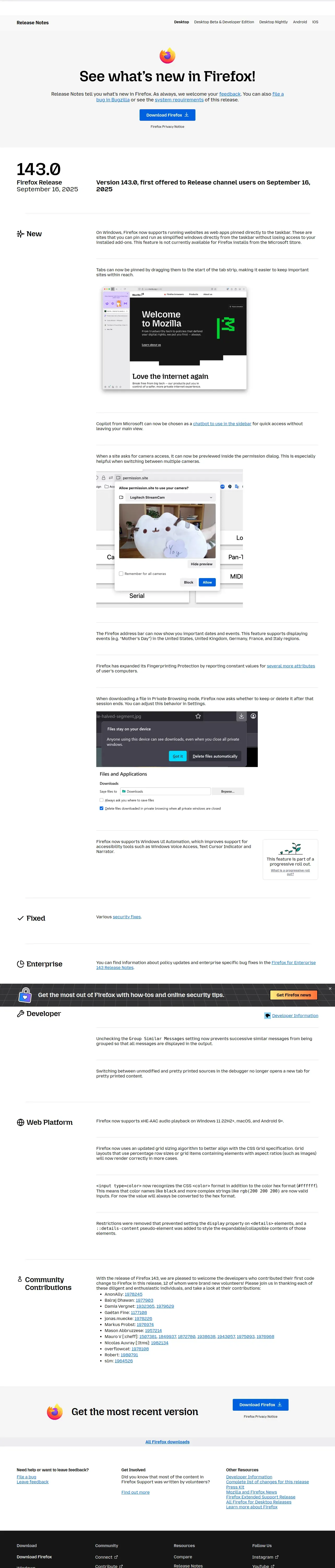 取得元URL: https://www.firefox.com:443/en-US/firefox/143.0/releasenotes/