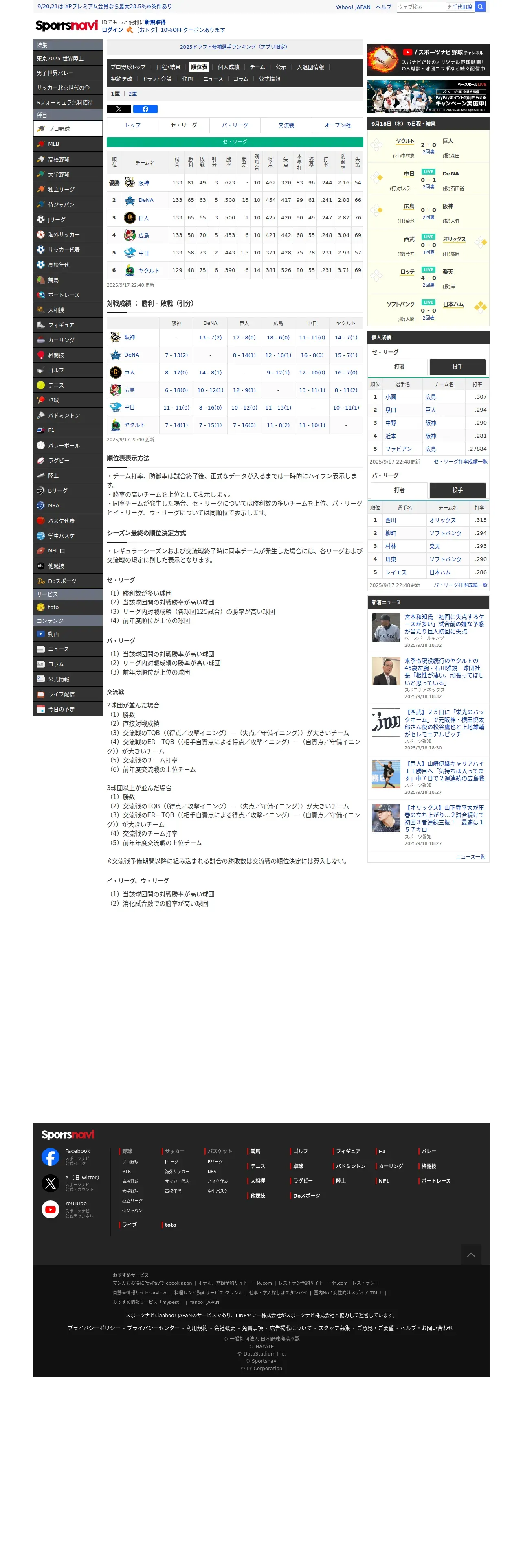 https://baseball.yahoo.co.jp:443/npb/standings/detail/1