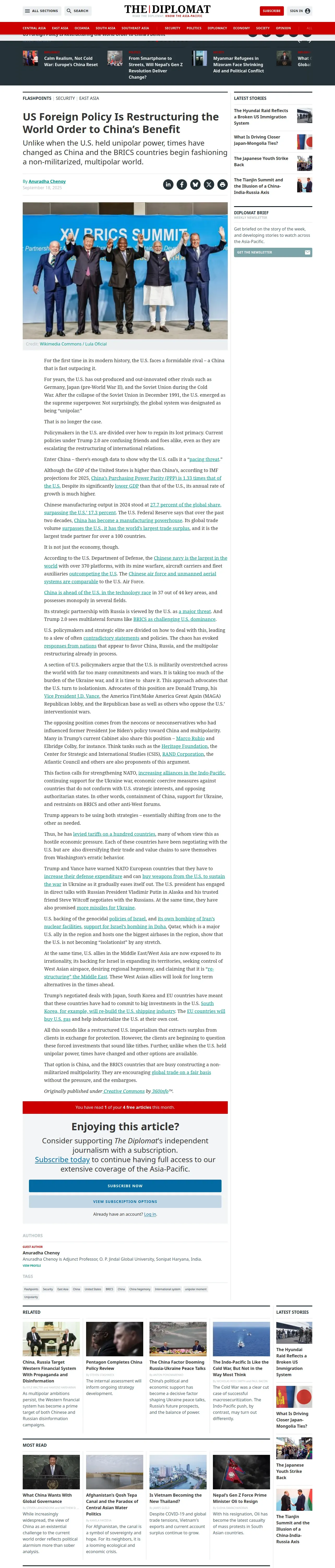 https://thediplomat.com:443/2025/09/us-foreign-policy-is-restructuring-the-world-order-to-chinas-benefit/