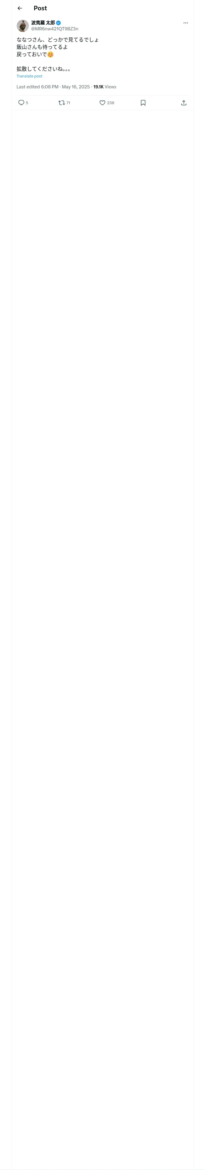 取得元URL: https://x.com:443/MR6nw421QT9BZ3n/status/1923304623441428877
