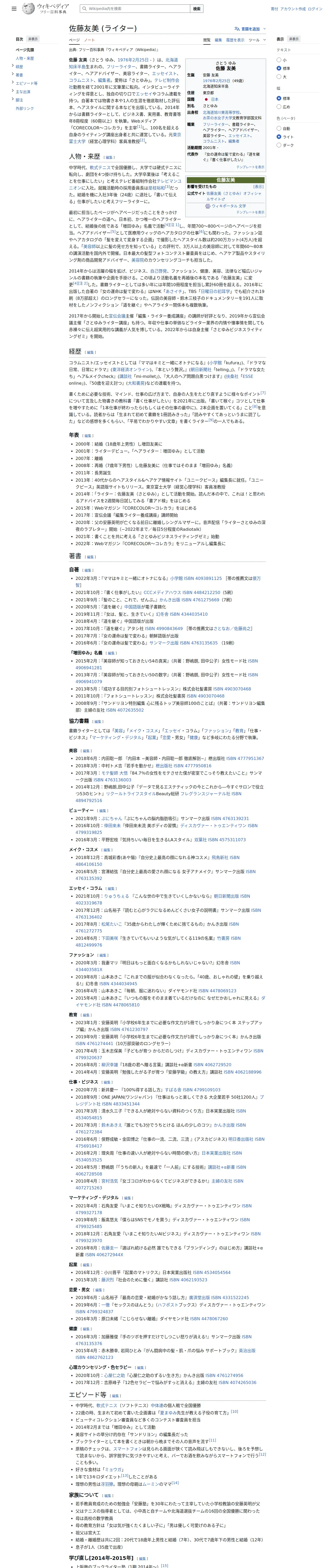 https://ja.wikipedia.org:443/wiki/%E4%BD%90%E8%97%A4%E5%8F%8B%E7%BE%8E_%28%E3%83%A9%E3%82%A4%E3%82%BF%E3%83%BC%29