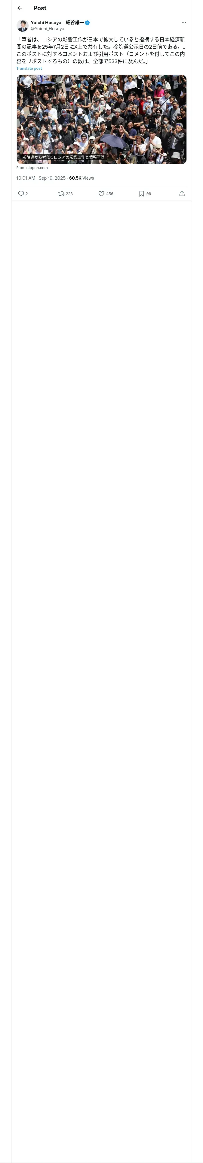 取得元URL: https://x.com:443/Yuichi_Hosoya/status/1968842743544783129
