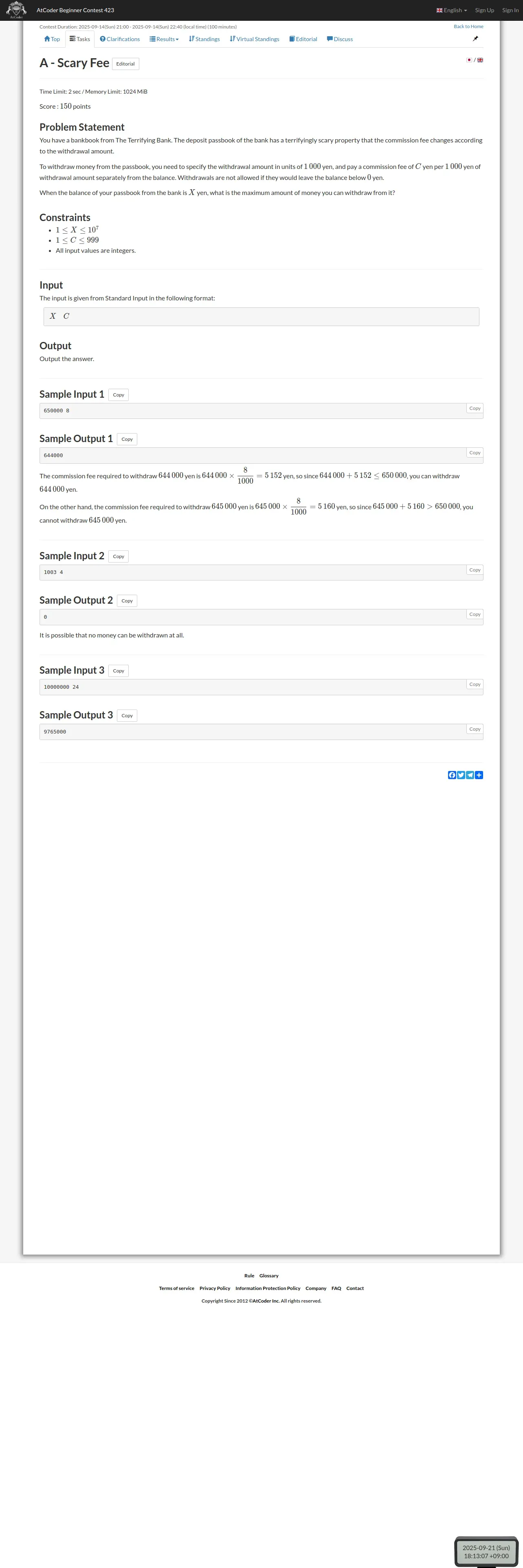 https://atcoder.jp:443/contests/abc423/tasks/abc423_a