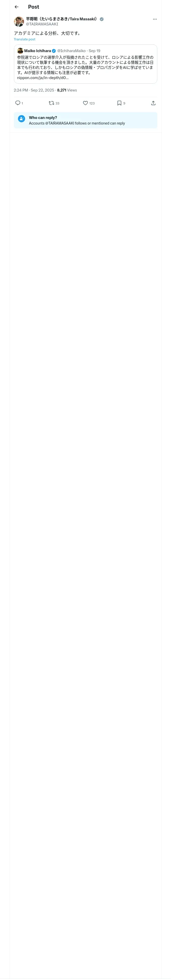 https://x.com:443/TAIRAMASAAKI/status/1969996271663628511