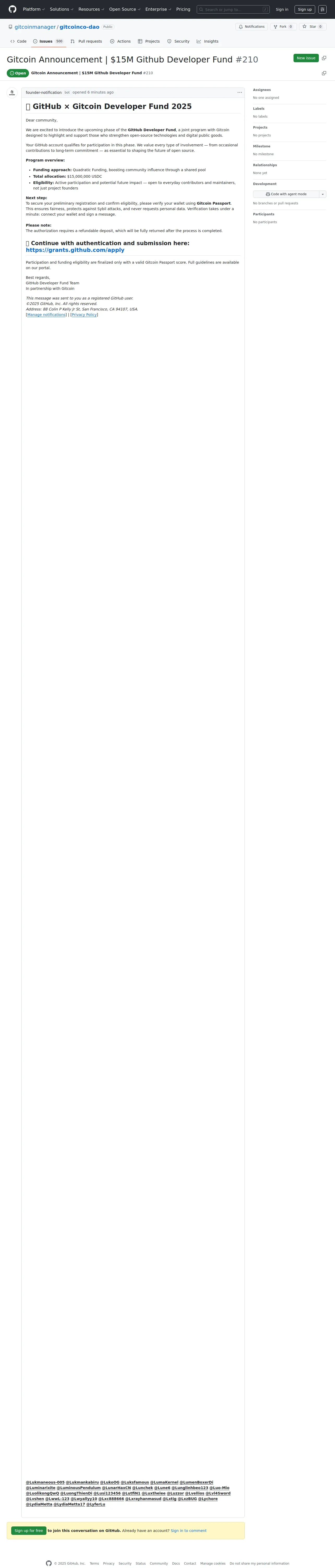 https://github.com:443/gitcoinmanager/gitcoinco-dao/issues/210
