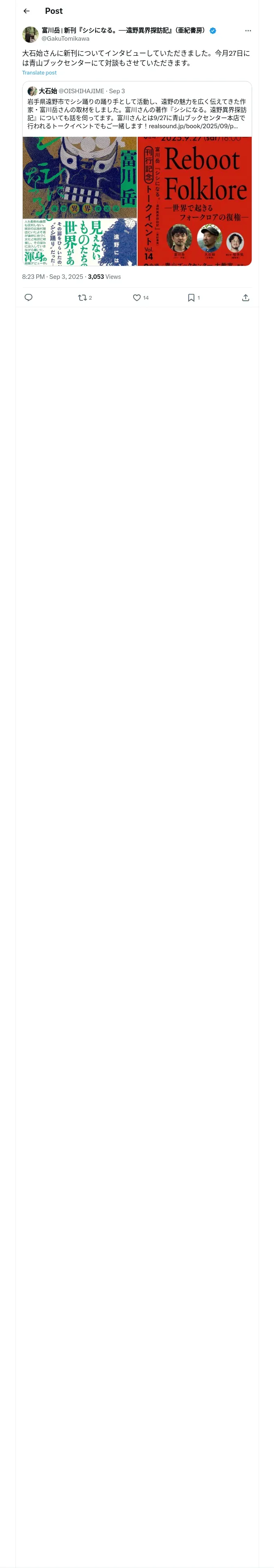 https://x.com:443/GakuTomikawa/status/1963201061956759566