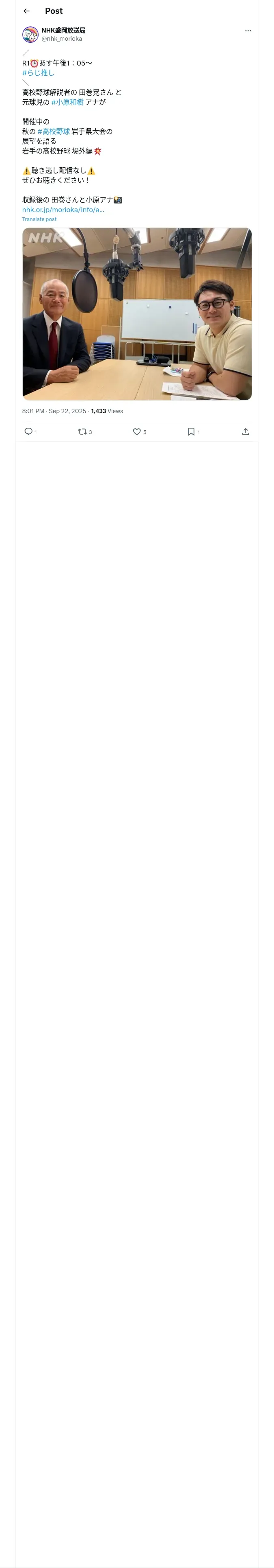 https://x.com:443/nhk_morioka/status/1970080948965568530