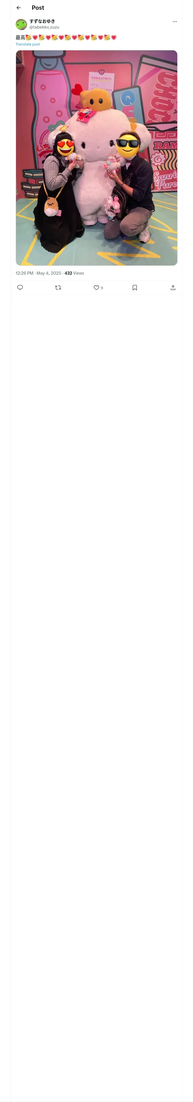 取得元URL: https://x.com:443/tabekko_suzu/status/1918869726161260857