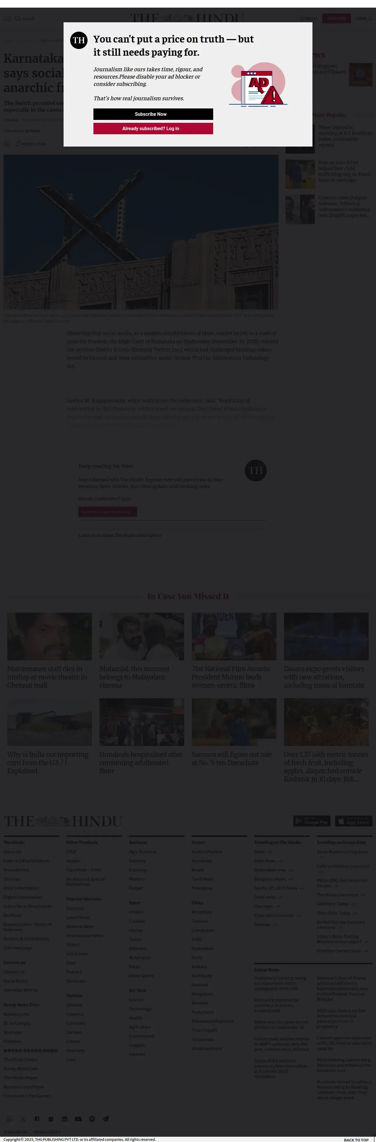 取得元URL: https://www.thehindu.com:443/sci-tech/technology/karnataka-high-court-rejects-x-corp-petition-challenging-take-down-orders/article70088651.ece