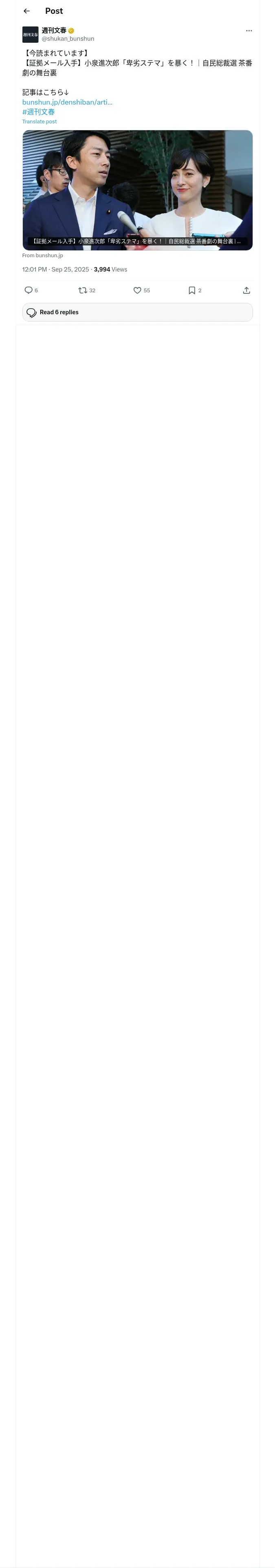 https://x.com:443/shukan_bunshun/status/1971047340577522061