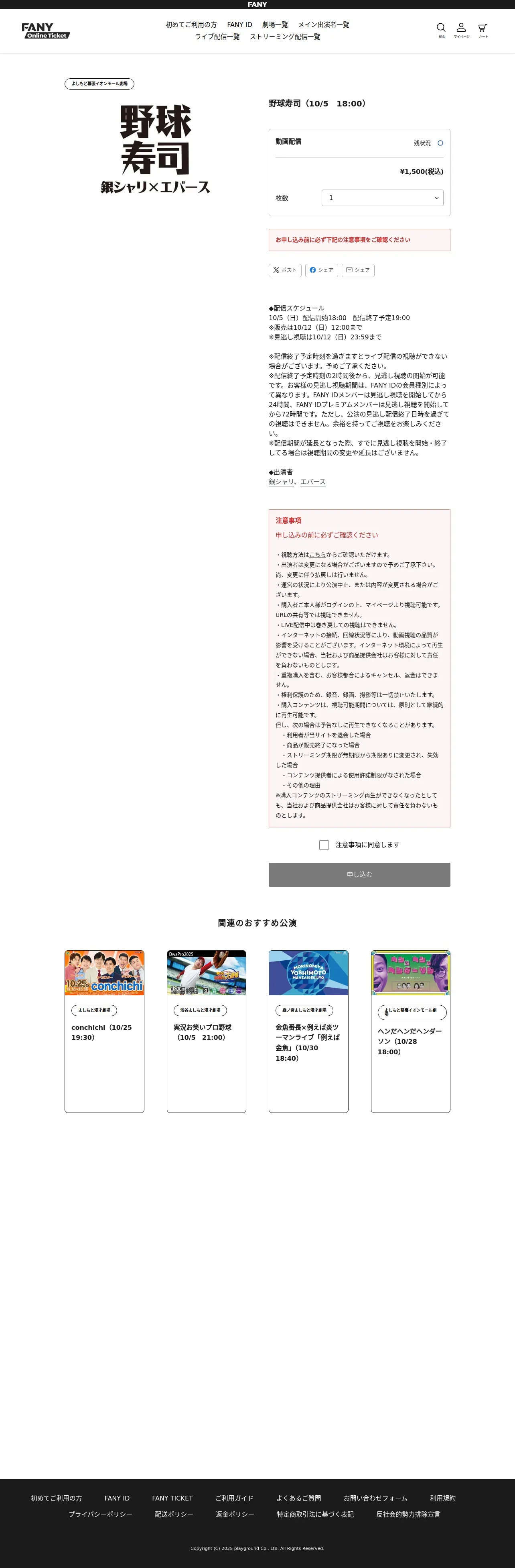 https://online-ticket.yoshimoto.co.jp:443/products/%E9%87%8E%E7%90%83%E5%AF%BF%E5%8F%B8-10-5-18-00