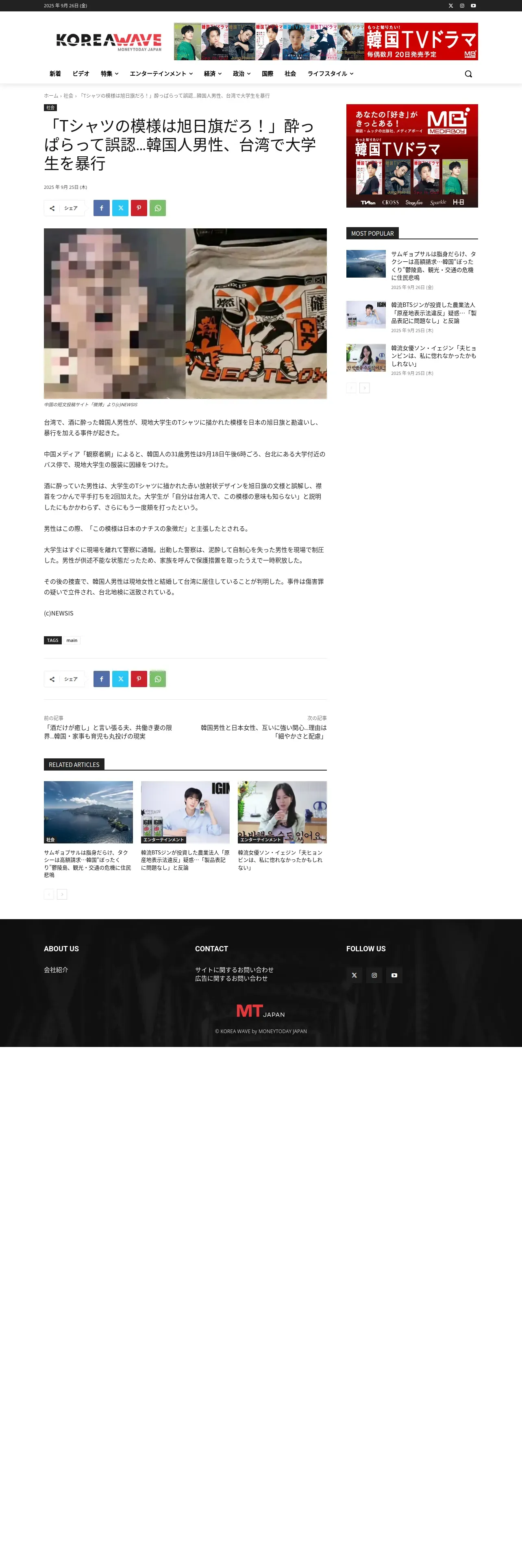 https://koreawave.jp:443/%e3%80%8ct%e3%82%b7%e3%83%a3%e3%83%84%e3%81%ae%e6%a8%a1%e6%a7%98%e3%81%af%e6%97%ad%e6%97%a5%e6%97%97%e3%81%a0%e3%82%8d%ef%bc%81%e3%80%8d%e9%85%94%e3%81%a3%e3%81%b1%e3%82%89%e3%81%a3%e3%81%a6%e8%aa%a4/
