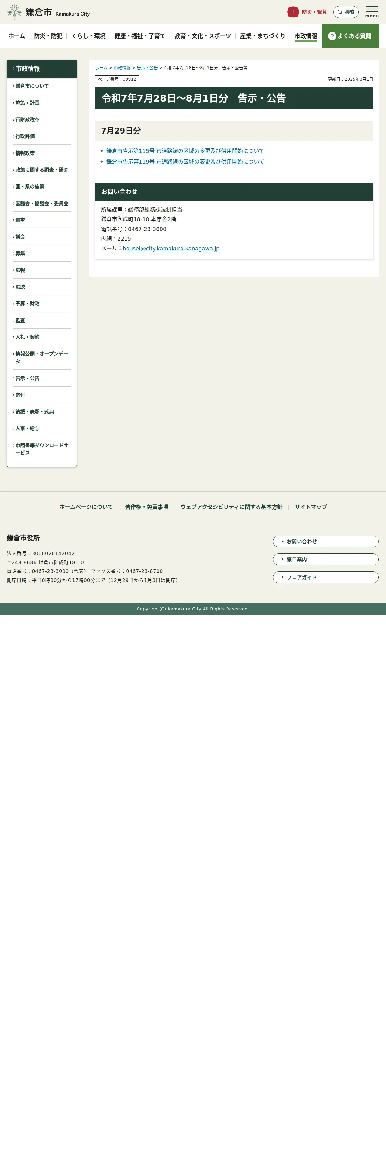 https://www.city.kamakura.kanagawa.jp:443/shisei/kokuji/070728kokuji.html