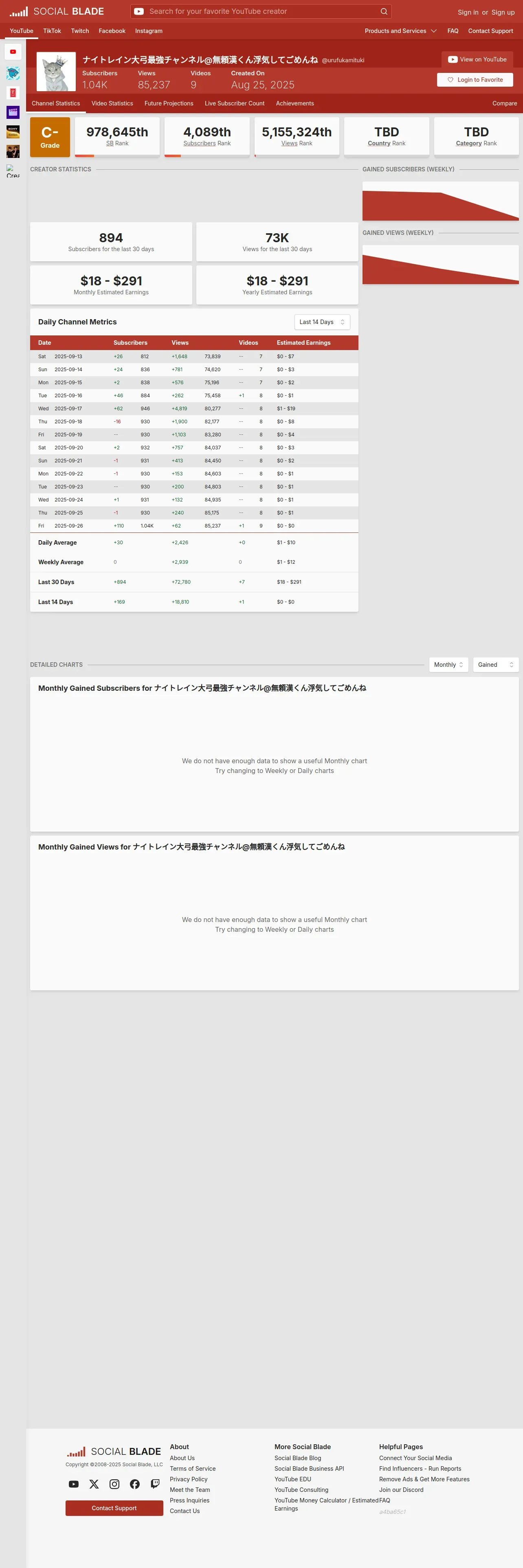 https://socialblade.com:443/youtube/channel/UC1c9B43MlwU0ukmaOBGDJug
