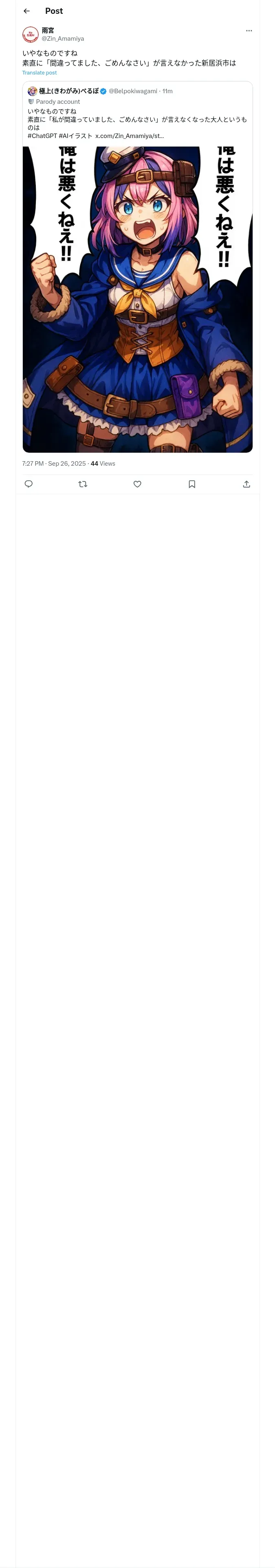 取得元URL: https://x.com:443/Zin_Amamiya/status/1971522021701120073