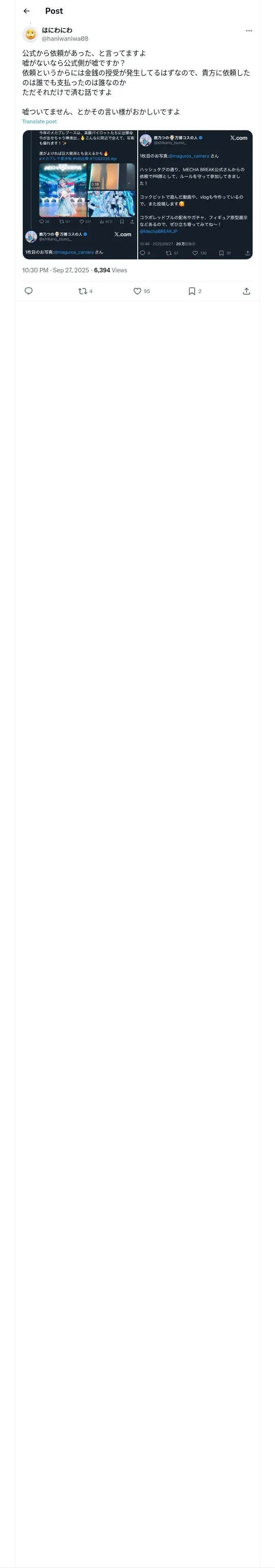 取得元URL: https://x.com:443/haniwaniwa08/status/1971930495933206757