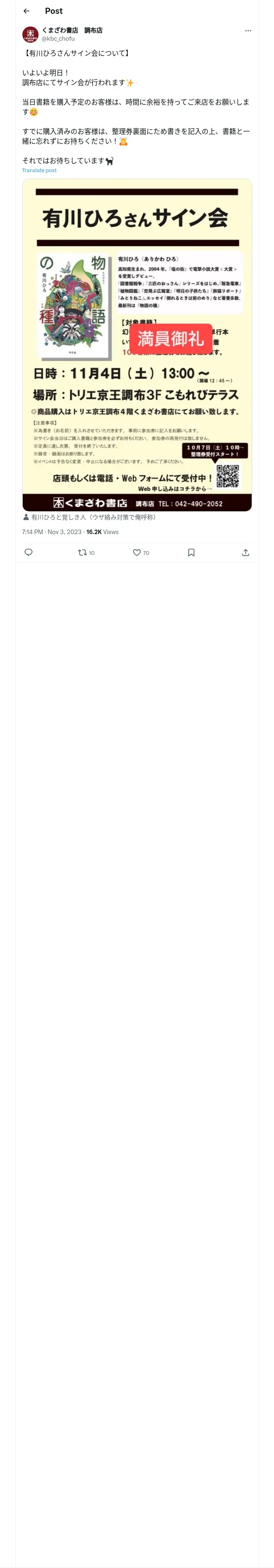 https://x.com:443/kbc_chofu/status/1720383862310830372