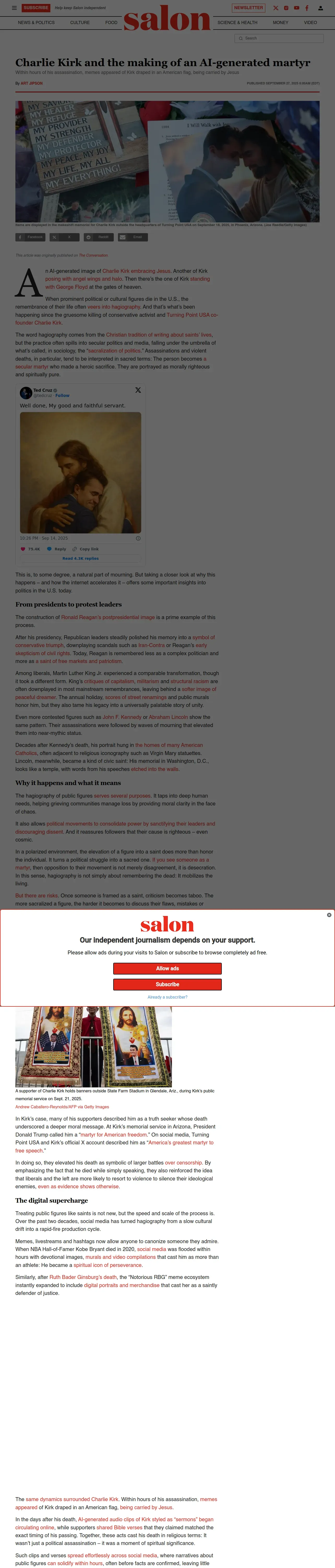 https://www.salon.com:443/2025/09/27/charlie-kirk-and-the-making-of-an-ai-generated-martyr_partner/