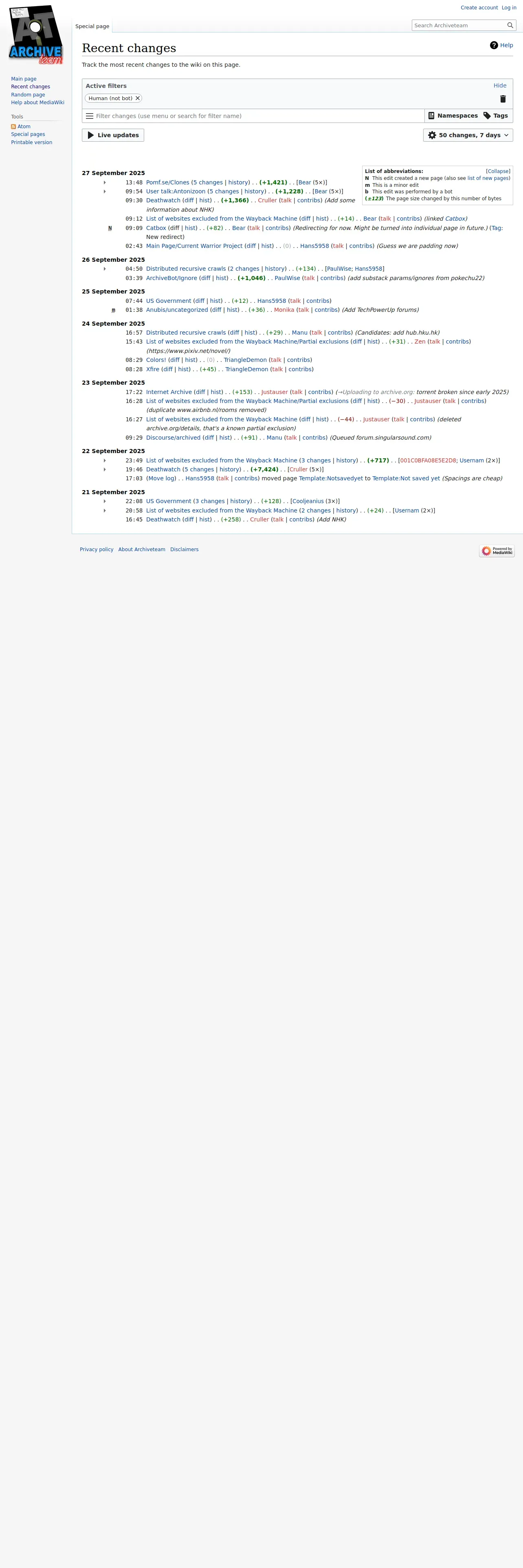 https://wiki.archiveteam.org:443/index.php/Special:RecentChanges