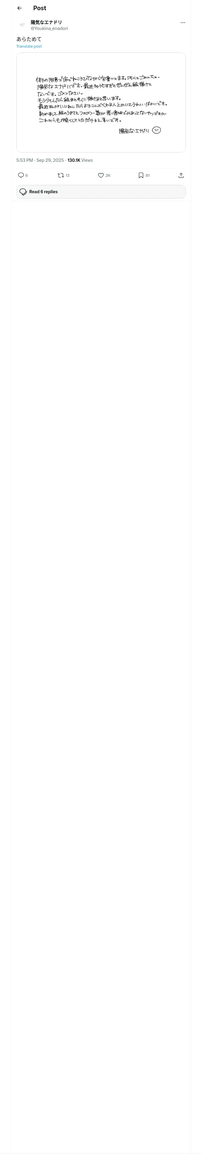 https://x.com:443/Youkina_enadori/status/1972585604161675675