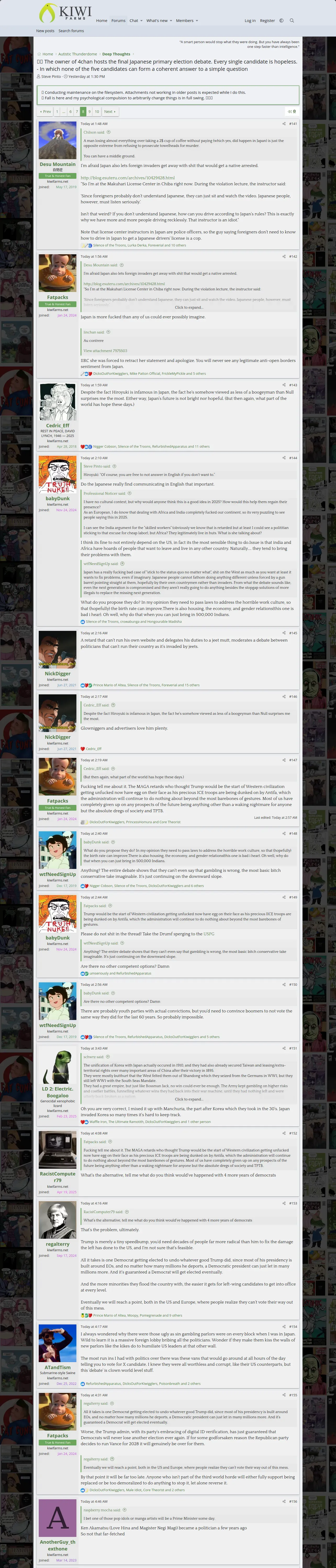 https://kiwifarms.st:443/threads/flag-japan-the-owner-of-4chan-hosts-the-final-japanese-primary-election-debate-every-single-candidate-is-hopeless.229464/page-8