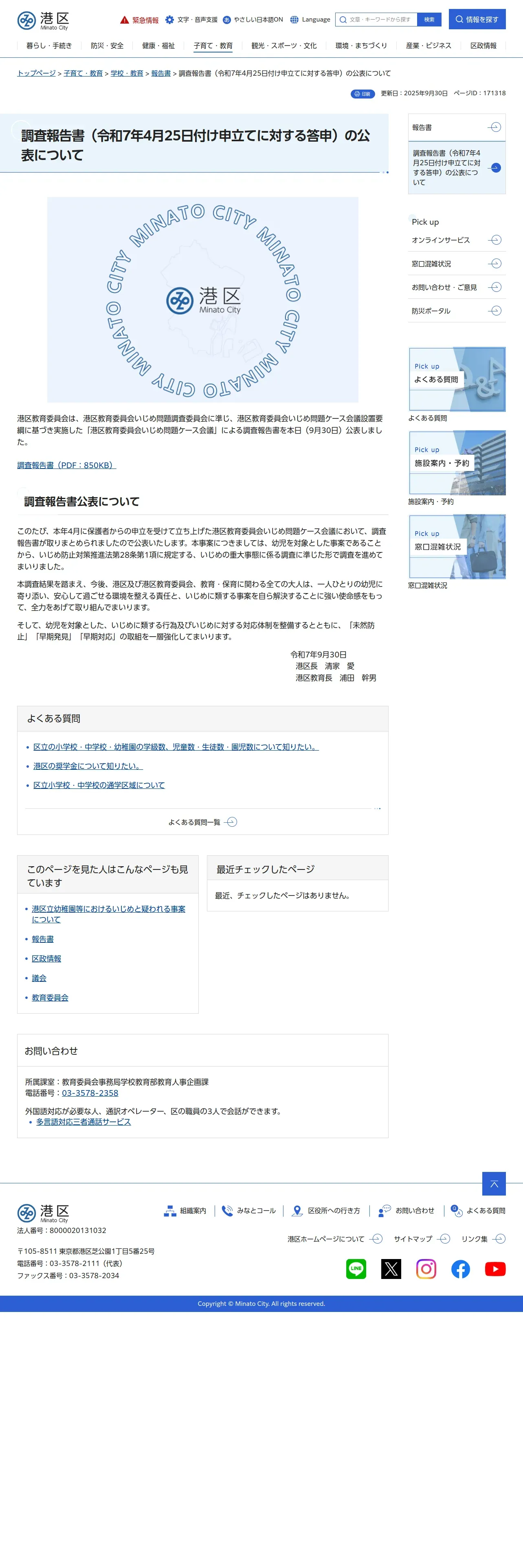 https://www.city.minato.tokyo.jp:443/shidoushuji/tyousahoukokusyo.html