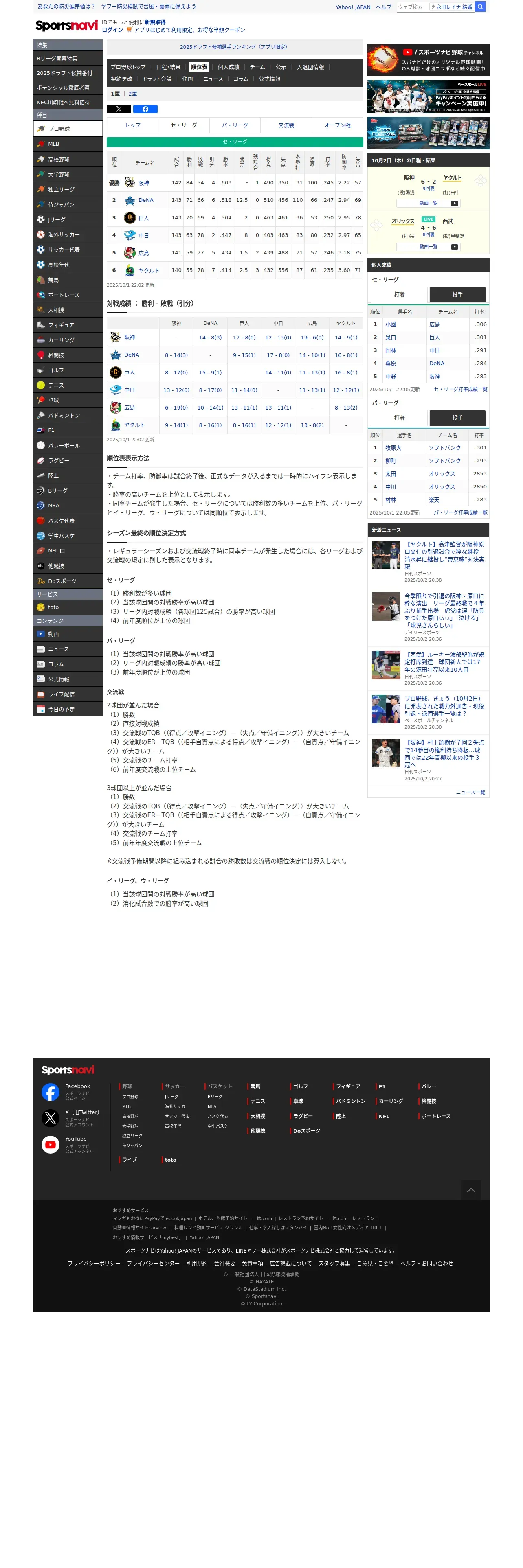 https://baseball.yahoo.co.jp:443/npb/standings/detail/1