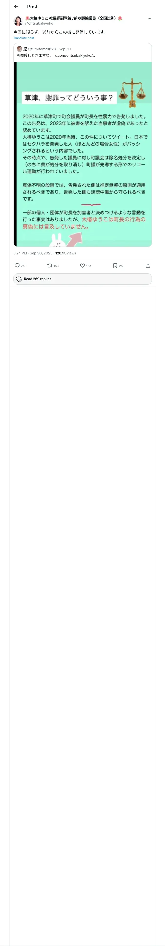 取得元URL: https://x.com:443/ohtsubakiyuko/status/1972940687395197088