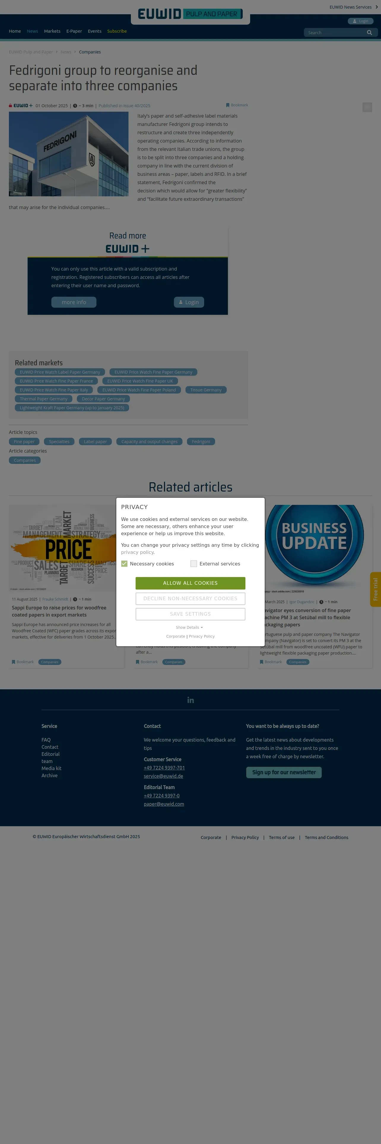 https://www.euwid-paper.com:443/news/companies/fedrigoni-to-restructure-and-separate-into-three-business-units-011025/