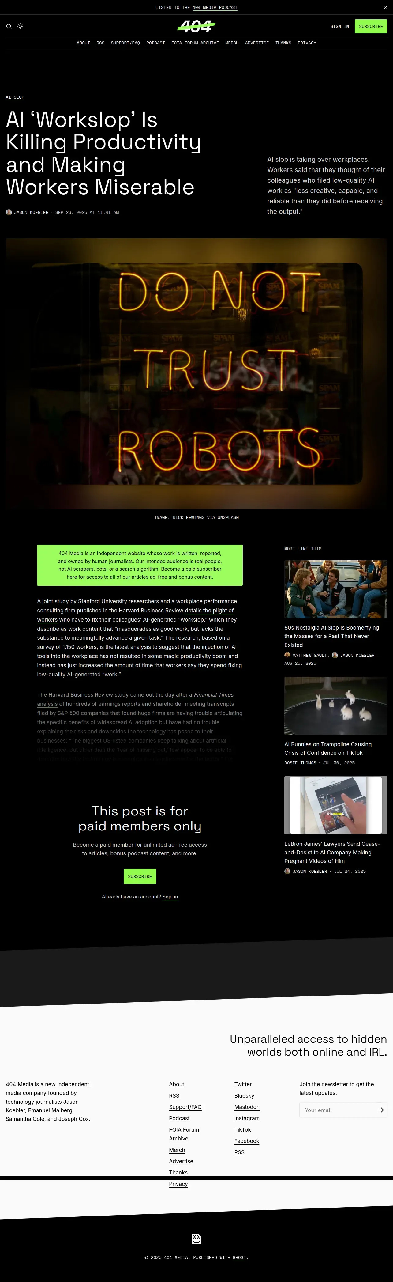 https://www.404media.co:443/ai-workslop-is-killing-productivity-and-making-workers-miserable/
