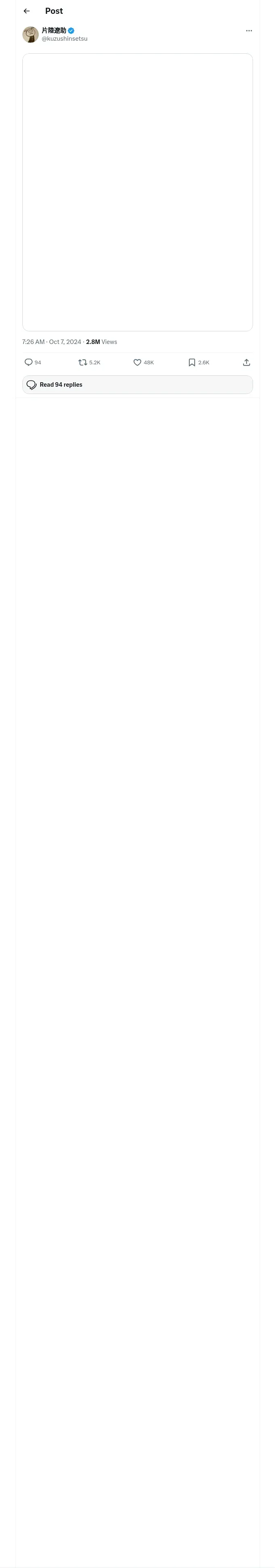 https://x.com:443/kuzushinsetsu/status/1843055230000435334