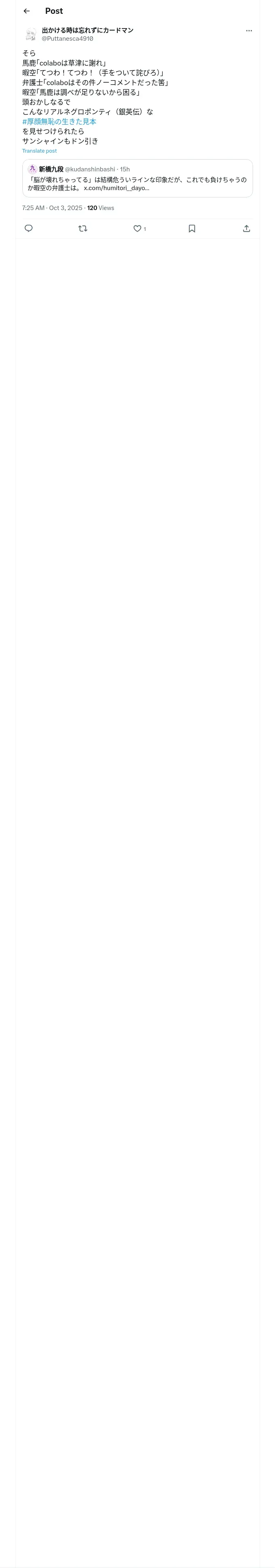 https://x.com:443/Puttanesca4910/status/1973876933118341130?t=nQaNMJltrNzOOEVTsAe87A&s=19