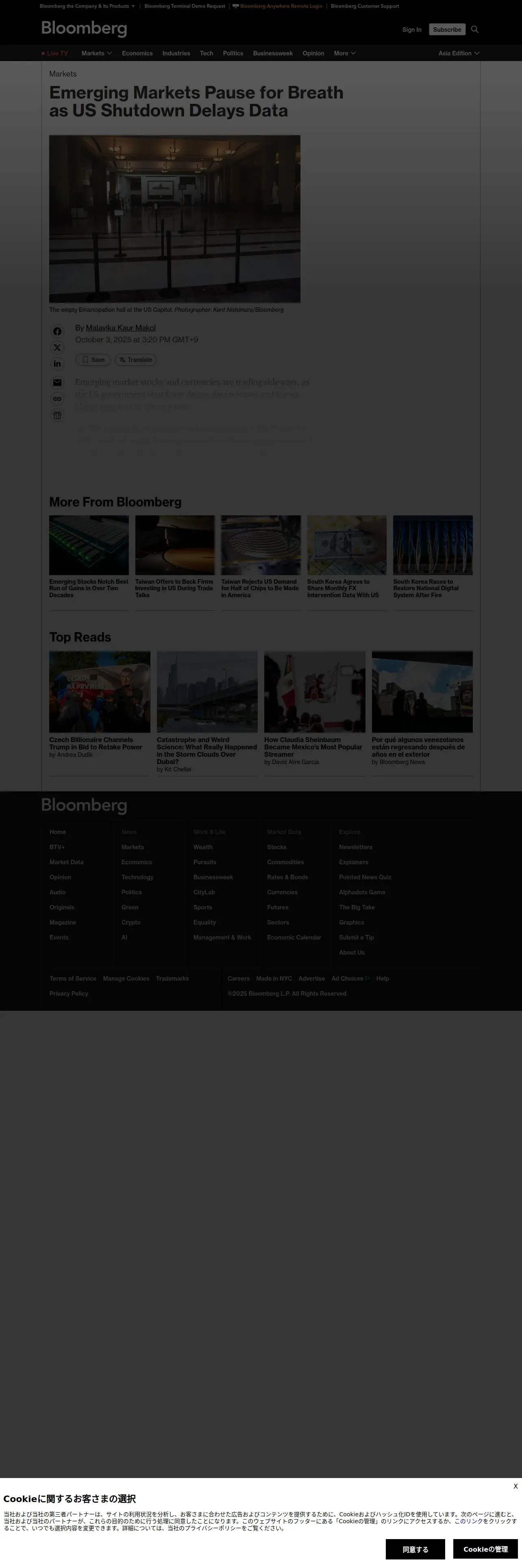 取得元URL: https://www.bloomberg.com:443/news/articles/2025-10-03/emerging-markets-pause-for-breath-as-us-shutdown-delays-data