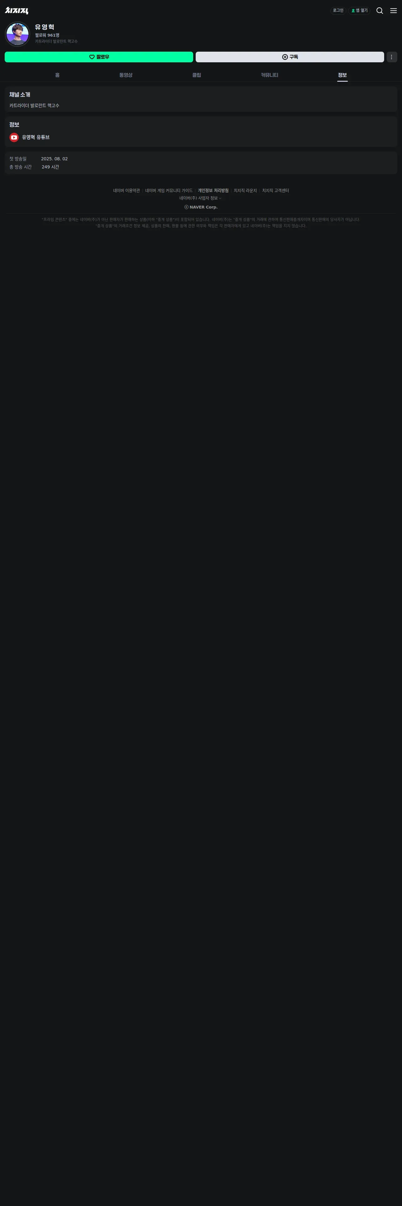 https://m.chzzk.naver.com:443/1e552e3c8ac6abefb4f22f314bbb6b30/about