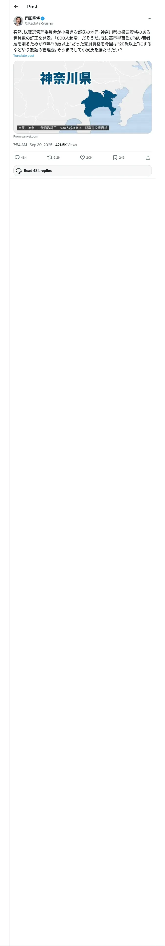 取得元URL: https://x.com:443/KadotaRyusho/status/1972797248833831265