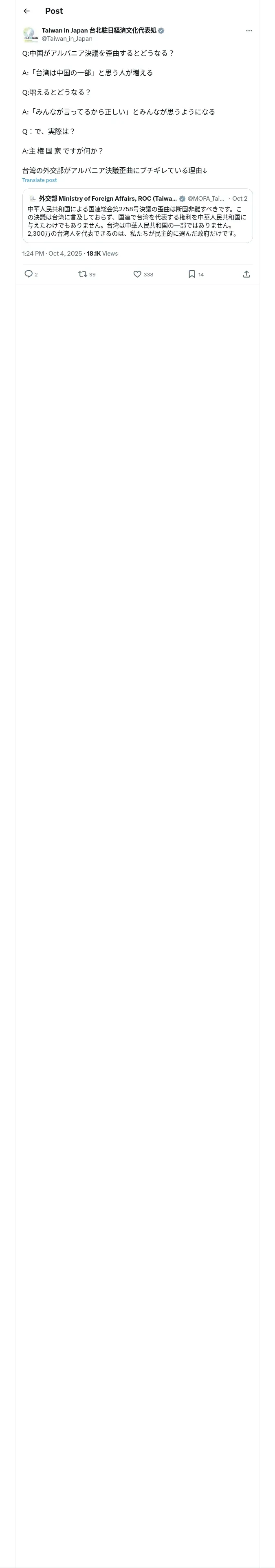 https://x.com:443/Taiwan_in_Japan/status/1974329632108523763