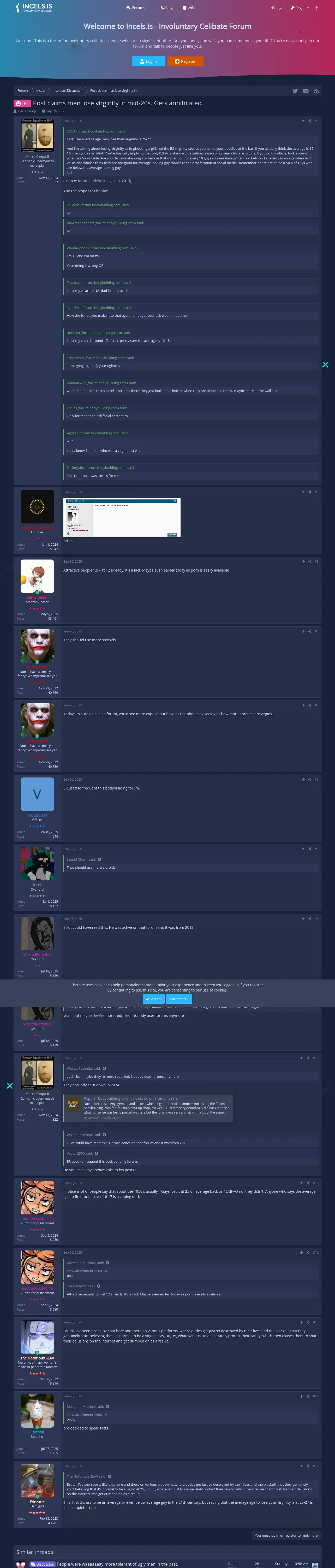 https://incels.is:443/threads/post-claims-men-lose-virginity-in-mid-20s-gets-annihilated.794602/