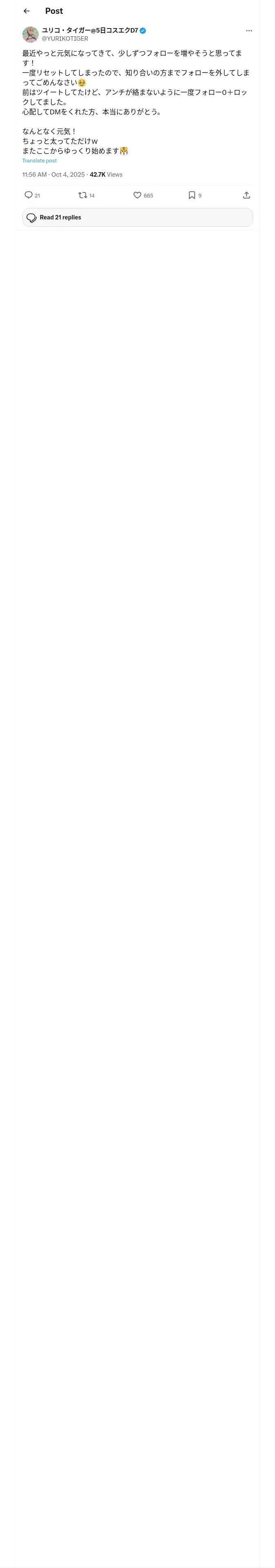 取得元URL: https://x.com:443/YURIKOTIGER/status/1974307519897178372