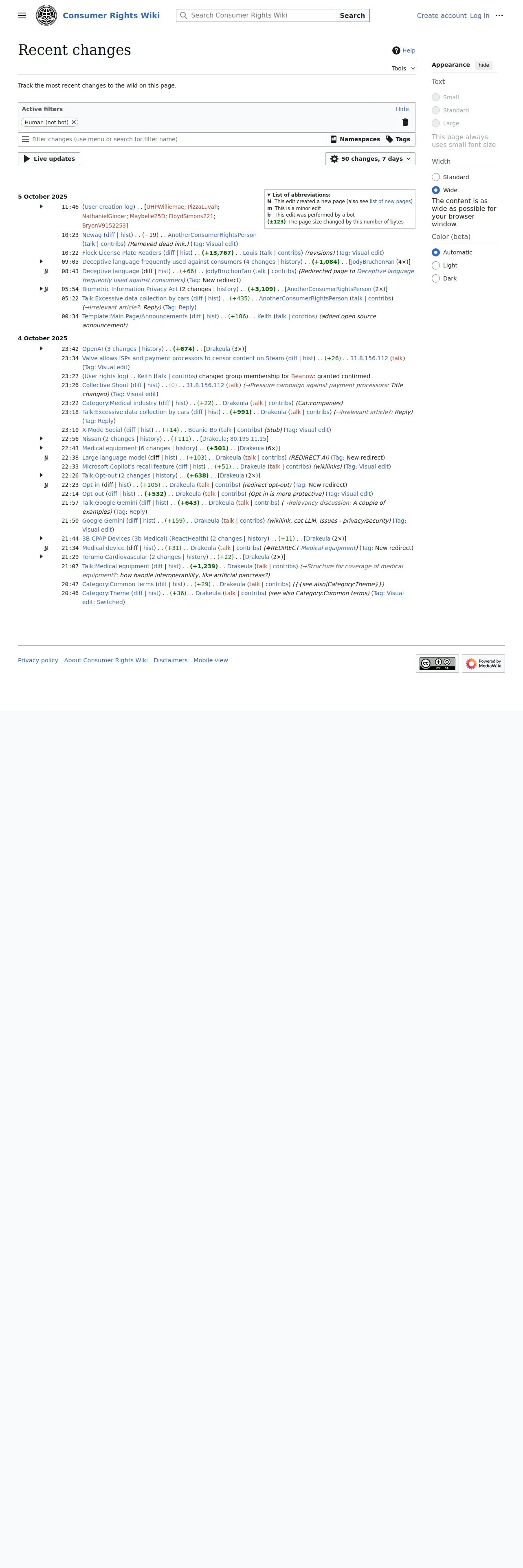 https://consumerrights.wiki:443/w/Special:RecentChanges