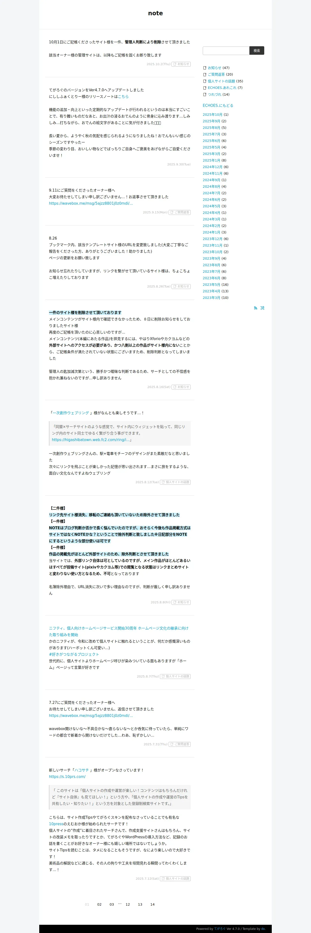 https://echoes.o0o0.jp:443/note/tegalog.cgi