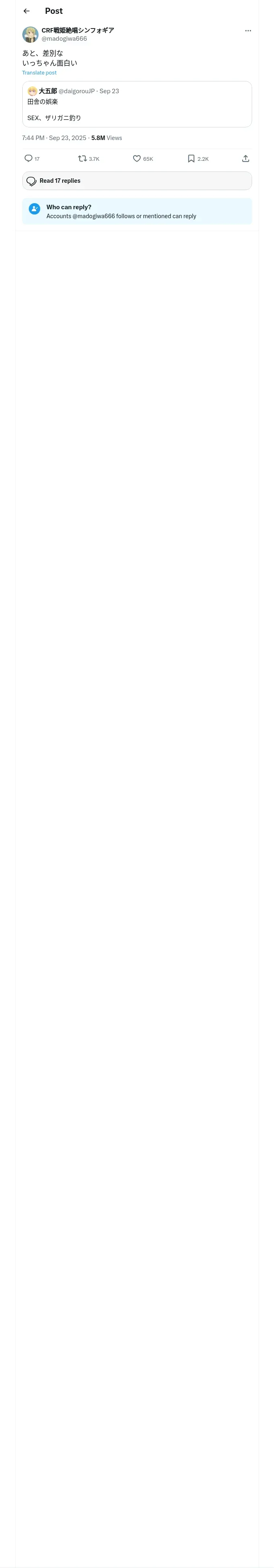 https://x.com:443/madogiwa666/status/1970439181907435606