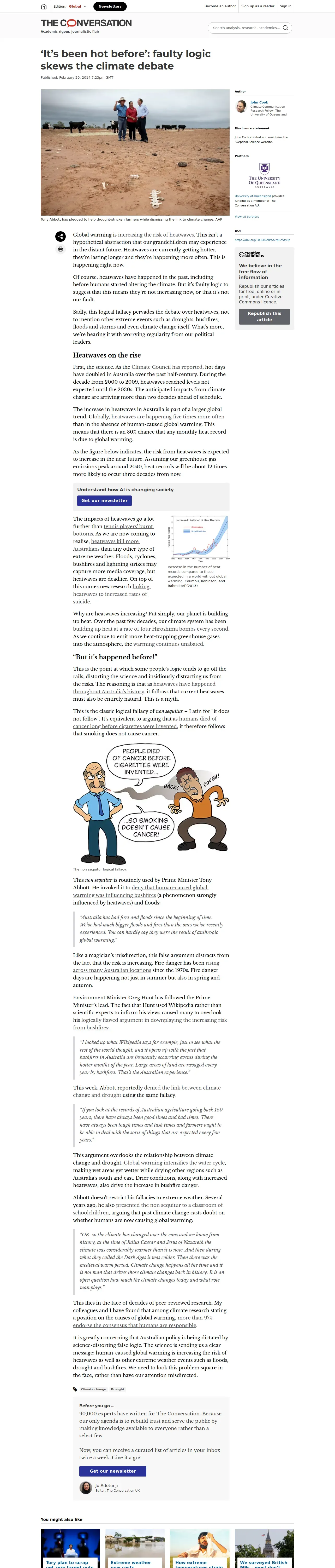 https://theconversation.com:443/its-been-hot-before-faulty-logic-skews-the-climate-debate-23349